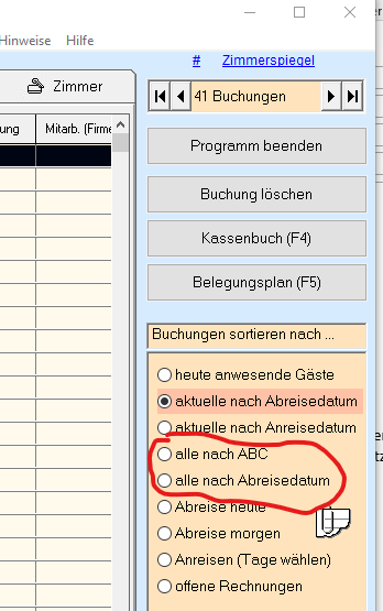 Eine Liste der stornierten Rechnungen gibt es nicht, Sie können aber in der Tabellen die Spalte "Zimmer" durch Klick auf die Spaltenübersicht sortieren, alle die Zimmer 0 aufweisen, sind Stornierungen bzw. Stornorechnungen. Vorher sollten Sie die Ansicht sortieren, so dass alle Datensätze zur Verfügung stehen.